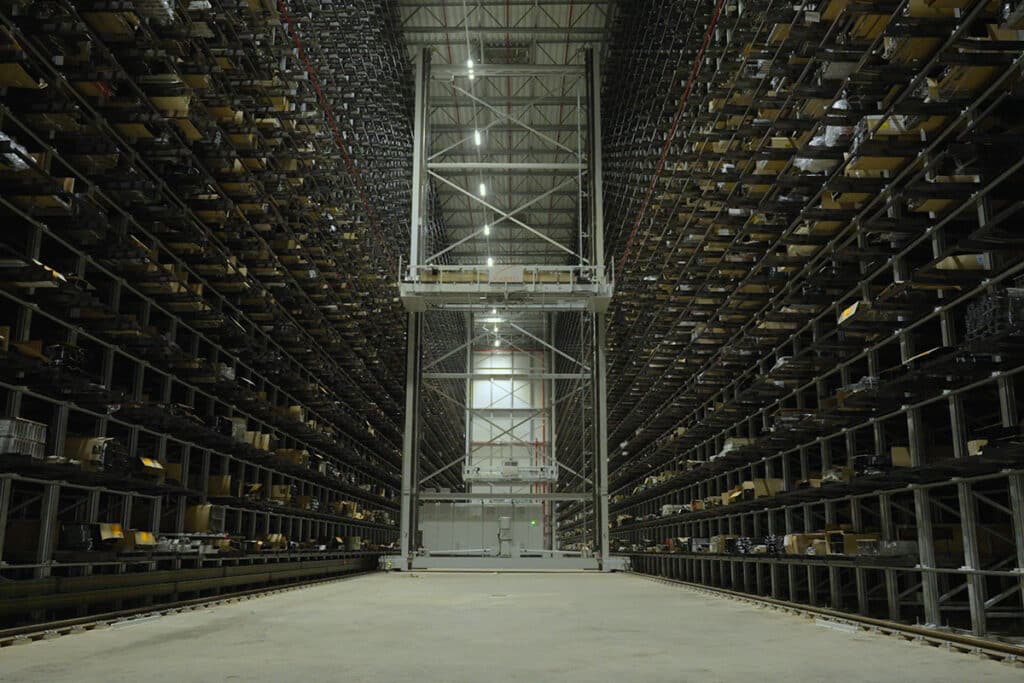 De hoogbouwinstallatie, uniek in de wereld, maakt gebruik van een vernieuwde aansturingstechnologie die intern werd ontwikkeld in samenwerking met de IT- en logistieke teams. “Hiermee hebben we de doorvoercapaciteit verdubbeld”, licht Bert Geerinckx toe. “Het magazijn werkt volledig automatisch, zonder manuele handelingen. Dat verhoogt de veiligheid, verbetert de efficiëntie en zorgt voor een snellere service aan onze klanten.”