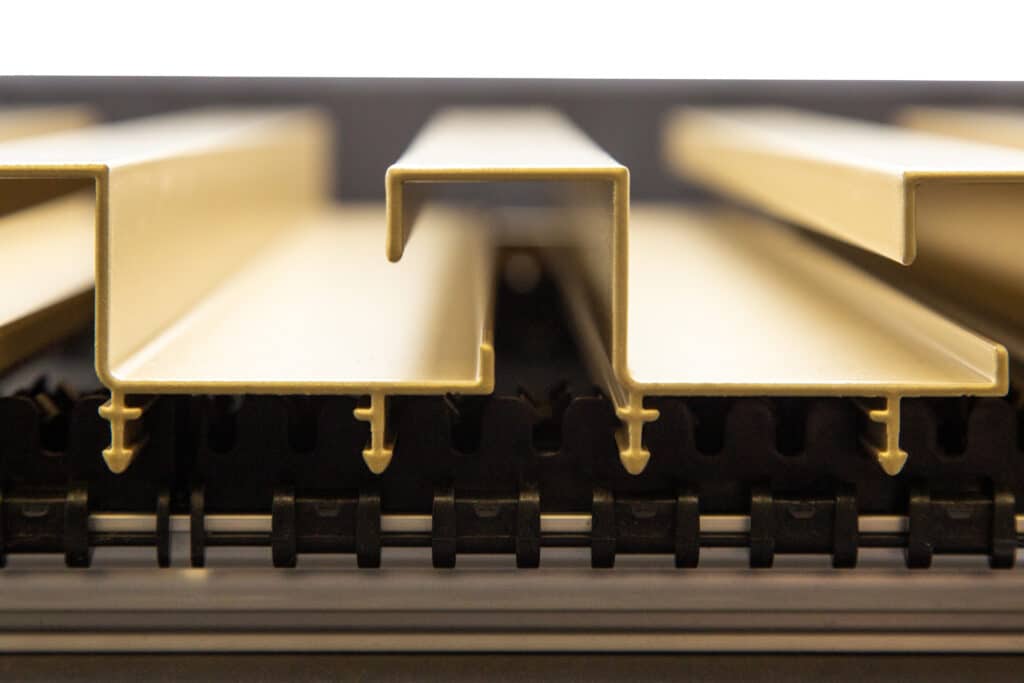Met dit nieuwe Linarte-profiel is het dus voortaan perfect mogelijk om ook de strakke Linarte gevelbekleding door te trekken voor ventilatie-openingen in de gevel. “De manier waarop deze lamel ontwikkeld is, laat bovendien een naa dloze integratie toe met alle andere Linarte-profielen en afwerkingsmogelijkheden”, aldus Jan. “Bovendien zijn ook deze nieuwe ventilerende lamellen in de beste Linarte traditie individueel uitklik- en vervangbaar.”