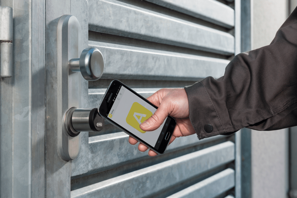 Met EMZY beschikt EVVA tevens over een elektronische motorcilinder. Deze maakt het mogelijk om binnen- en buitendeuren die toegang bieden tot kwetsbare zones automatisch te openen en te vergrendelen. Dit op basis van eenvoudige configuratie via een handige app.