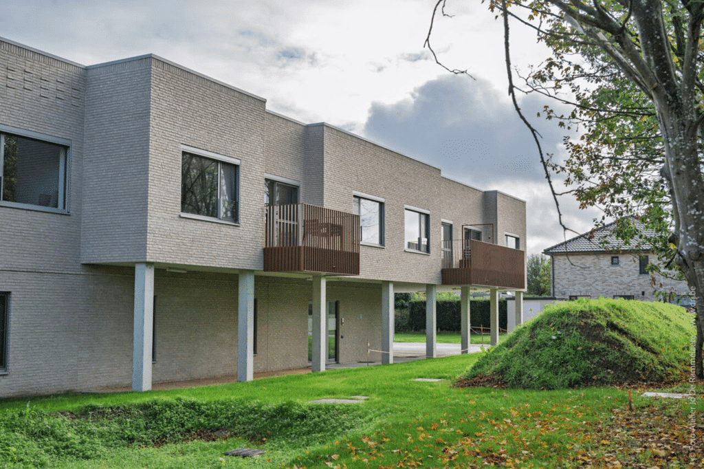 “Het uitgangspunt was een huiselijke woning op mensenmaat, ingebed in een aangename en actieve buurt”, licht Toon Vandewalle van M4 architecten en ingenieurs toe. “Wonen staat centraal, zorg blijft bewust op de achtergrond.” Die visie vertaalt zich in kleinschalige leefgroepen, een duidelijke circulatie en een sterke relatie met licht en groen.